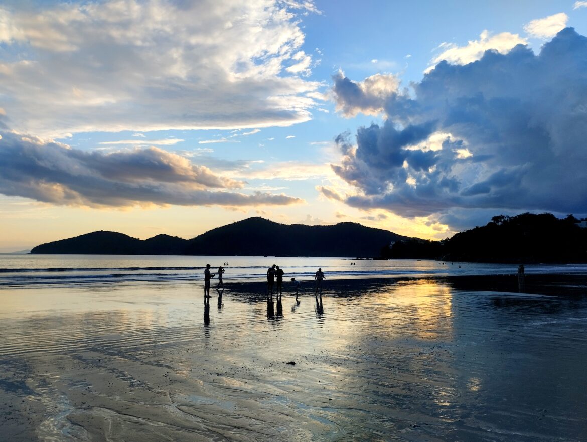 Entardecer após um belíssimo pôr do sol na praia da Enseada.