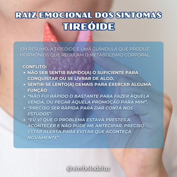 Quando os sintomas surgem ao lado direito da tireoide: “não ser rápido o suficiente para conquistar/realizar algo”. Exemplo: Um emprego, uma promoção, um contrato, um negócio ou uma compra que alguém deseja fortemente, mas se sente muito lento para “alcançá-lo”.